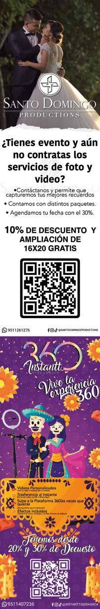 34 SUSCRÍBETE PARA QUE LAS RECIBAS EN TU HOGAR U OFICINA POR 1 AÑO (8 Ediciones) $400.00 (Cuatrocientos pesos) (951) 2038127 @VidaEstiloOax @vidayestiloax Vida&Estilo Oaxaca www.revistavidayestilo-oaxaca.com.mx
