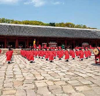 más grande del mundo del siglo XIV. El ritual Jongmyo Jerye, que incluye música y danza ritual, se celebra en el santuario desde hace más de 600 años. Gracias a la extensa y cuidada conservación del acto, la UNESCO lo designó como Patrimonio Cultural Inmaterial. Cada año, el primer domingo de mayo, se hace una recreación de la ceremonia ritual real.