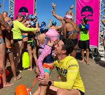 Seguindo as braçadas do pai: Marcos Campos recebeu sua filha Isabela em sua primeira prova no Aquamundo.