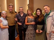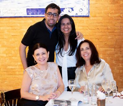 Celebração em família! Os irmãos Odir, Veridiana e Gustavo comemoram o aniversário da mãe no restaurante Caseh, em Taubaté.