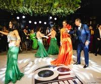 Nababesco. Essa é a palavra que pode definir o que foi o casamento de Anna Júlia Cossa e Michael Santini em um pleno sábado de setembro. Na Catedral tomada de copos de copos de leite a cerimônia musicada o tempo todo arrancou muitas lágrimas de alegria. Os convidados ainda não sabiam do que estava por vir. A recepção no Vivaro foi algo de jamais visto. Fernando Bucholz fez e aconteceu transformando em realidade os sonhos do casal, de uma noite pra ficar na memória de todos. Depois da profusão de copos de leite na igreja ele simplesmente tombou com tudo e com todos na recepção, apresentando uma cenografia e uma décor apaixonantes por onde os trocentos convidados desfilavam entre uma quantidade sem fim de flores de várias espécies, tudo em tons de verde e branco.