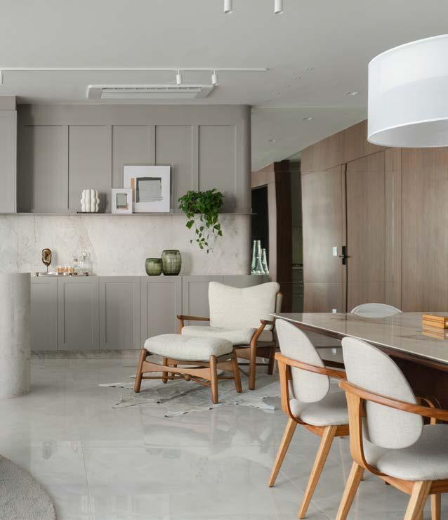 A GS Mármores é especialista em paginação, técnica de assentamento e manejo que promove o encontro dos veios naturais das rochas, criando ambientes refinados e atemporais. Na foto, paginação de mármore Michelangelo Nuvolato. Foto por Ethienne Canivarolli.