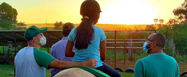 “A equoterapia é um tratamento que utiliza o cavalo como o coterapeuta. O cavalo possui um andar tridimensional, único, comparado ao do ser humano. Ele consegue levar até o cérebro cerca de 1800 a 2200 estímulos em 30 minutos de equoterapia. Em crianças com autismo o contato com o animal proporciona a melhora da interação social e desenvolve a linguagem corporal. As sessões são adaptadas à necessidade de cada criança. E isso é determinado pelos médicos que fazem o encaminhamento delas para a equoterapia. A equipe multidisciplinar faz a avaliação e realiza o plano de atendimento individual, que inclusive pode incluir sessões de hidroterapia e fisioterapia.