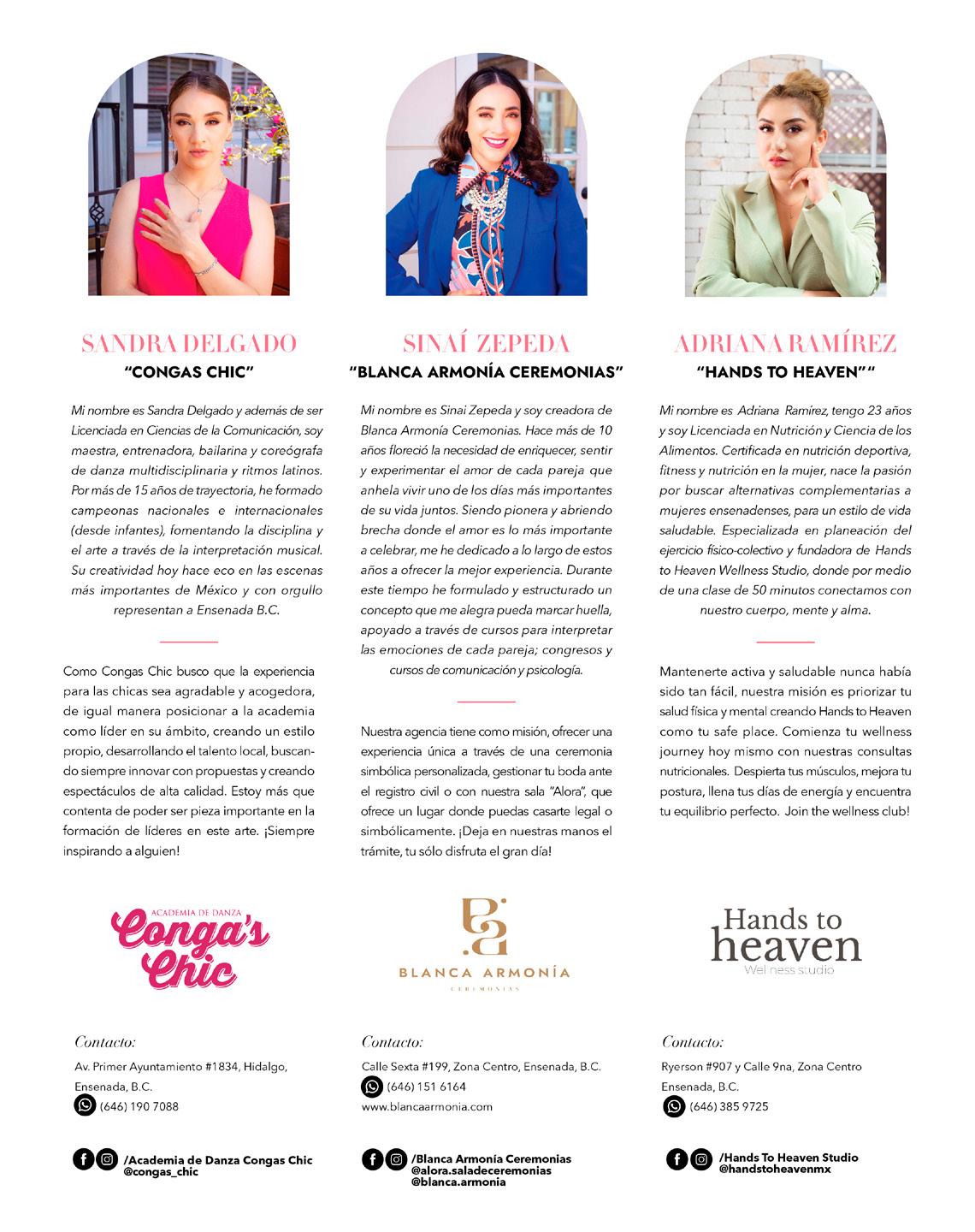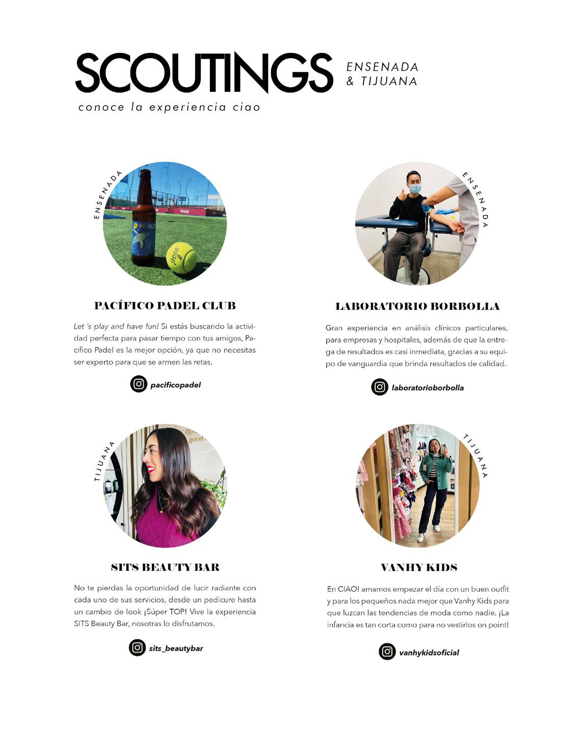 CIAO!, con sede en la ciudad de Ensenada, B.C. México. Todos los derechos de reproducción del material editorial son propiedad de Perla Cristna Batiz Sánchez. Certificado IMPI con número de registro 2239541 como Revista CIAO!. Certificado de derechos de autor al uso exclusivo INDAUTOR en trámite. Certificado de licitud en trámite. Certificado de contenido en trámite. Tiraje de 3,000 ejemplares. Revista CIAO! es distribuida de manera gratuita en Ensenada, Valle de Guadalupe, Tijuana y Mexicali, B.C. México. CIAO! y colaboradores no son responsables del anunciante, tampoco de los artículos mostrados en ésta publicación, así como los logotipos pertenecen a sus respectivos propietarios.LAM. Myrna Estrada Ochoa Directora General | Ventas @myrnaestradao LAM. Perla Batiz Sánchez Editora General | Admon. @perlabatizs