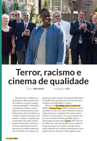 grande parte pelo aumento das oportunidades dadas aos profissionais que fazem parte de tais minorias e entendem suas dificuldades e anseios. Obras como Moonlight: Sob a Luz do Luar (2016) e Pantera Negra (2018), alcançaram sucesso de público e crítica não só por abordarem temáticas importantes para o imaginário do mundo contemporâneo e por dar espaço e voz a uma minoria, mas por serem produções de alta qualidade. Mas de todos longas recentes, talvez Corra! (2017) seja um dos filmes que mais marcará época com o passar do tempo, por propor uma análise social das tensões raciais existentes na sociedade contemporânea como premissa de uma obra que combina gêneros cine-