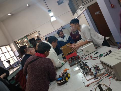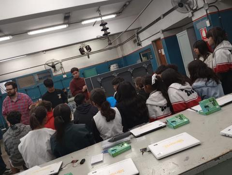 Estudiantes de 5º año de la especialidad trabajaron junto al profesor Alberto Sparta en la creación de un auto prototipo a escala. El auto es controlado con una aplicación mediante bluetooth. Cuenta con un brazo y una pinza para la manipulación de objetos.