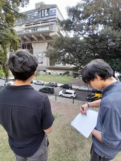 Los estudiantes de 2° año del turno tarde visitaron la Biblioteca Nacional acompañados por el bibliotecario Marcelo Romero. En las fotos, alumnos de 2°6ª, luego de la visita realizaron croquis en perspectiva cónica de una de las vistas de la Biblioteca.