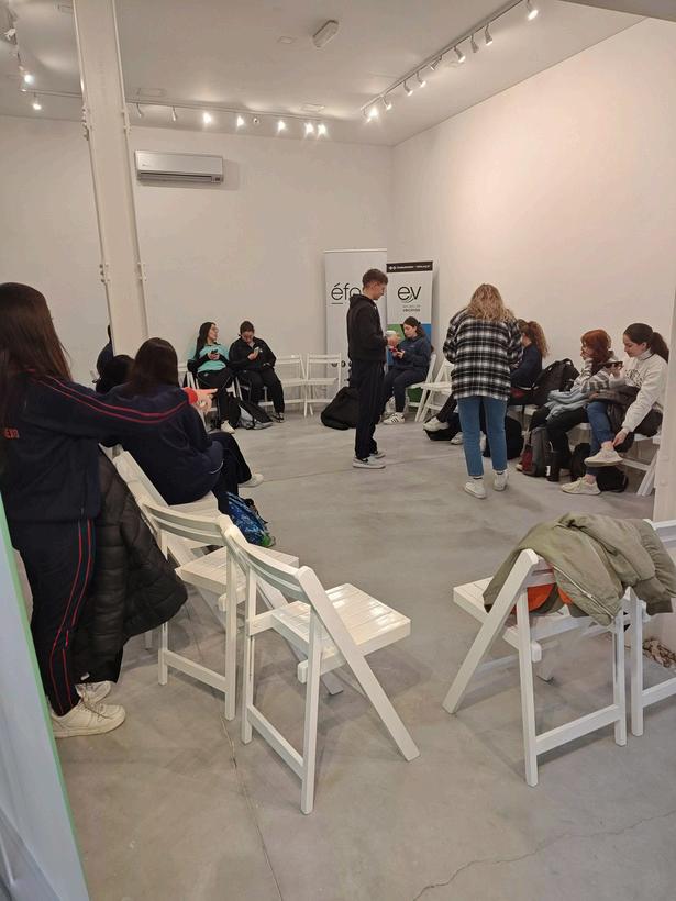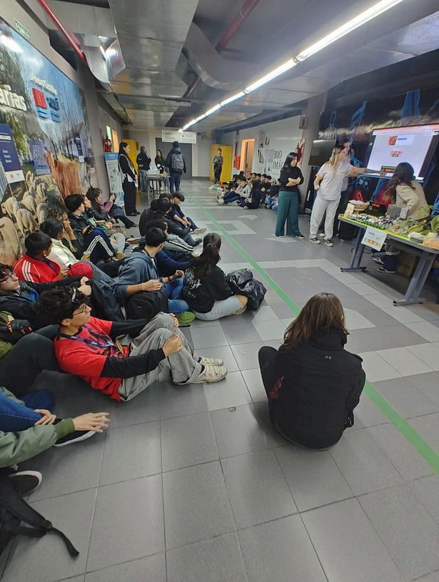 Los alumnos escuchan y observan los proyectos realizados durante el año. Espacio Digital. Muestra de robots.