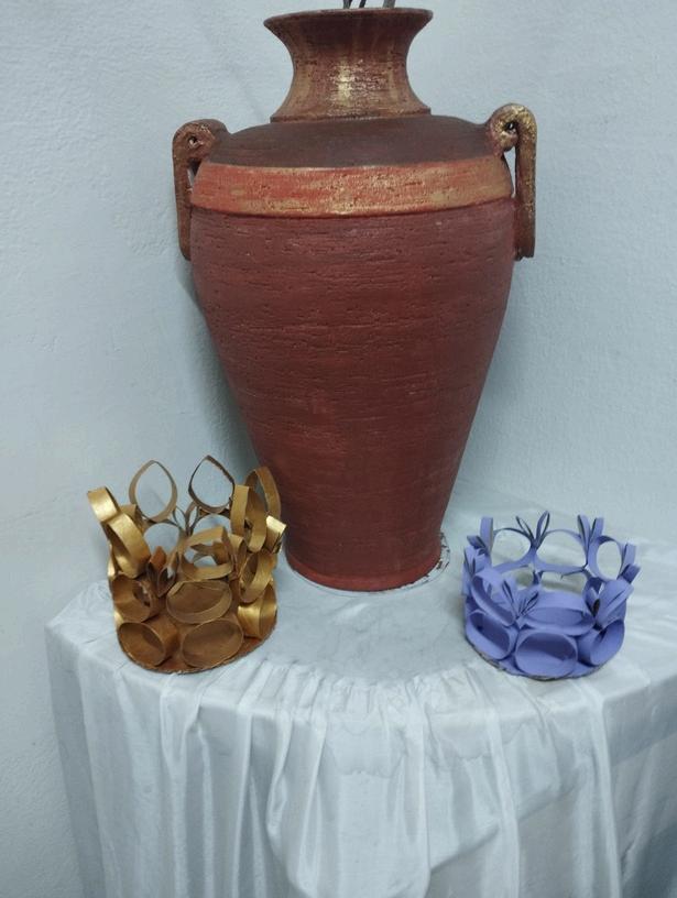 Velador hecho con tubos de cartón