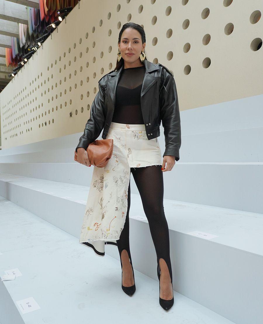 El top, la falda y la cartera son Adolfo Dominguez y la chaqueta es Zara.