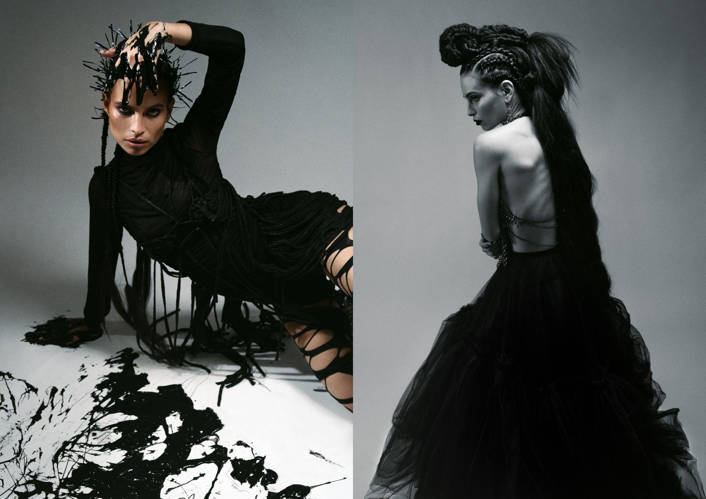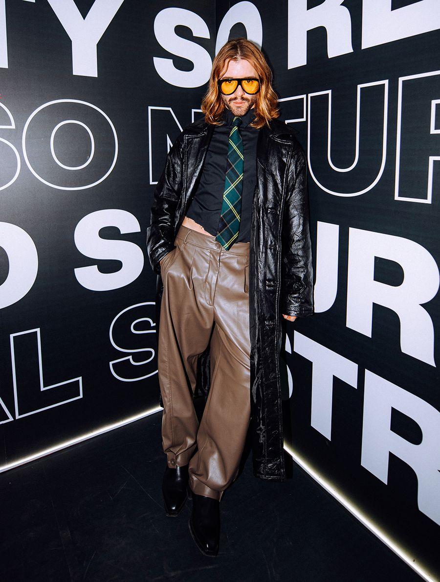 El traje de cuero es @Sarahregensburger_official, los zapatos son Jimmy Shoes y la cartera es @houseof_ito. El estilismo lo hizo @max_labazov.
