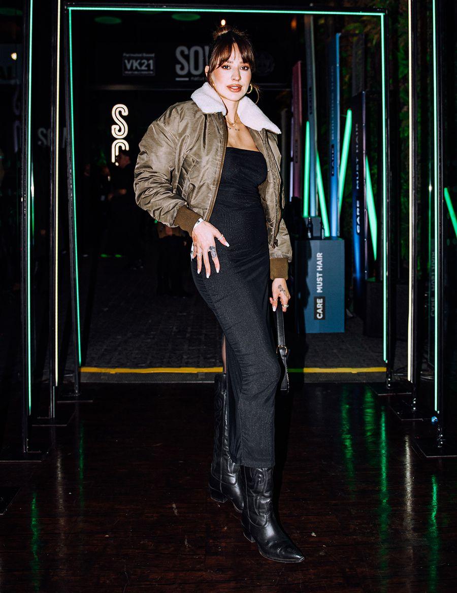 El vestido, las botas y la chaqueta son Zara y la cartera es Tous. Mi diseñador favorito es Mugler y uso el perfume Angel de Mugler.