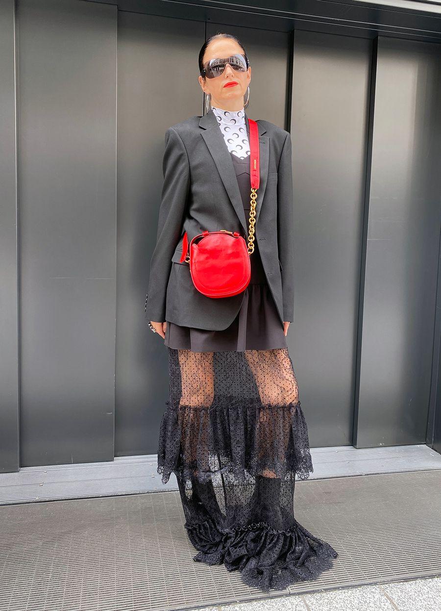 El vestido de encajes es vintage, el vestido negro es Zara y el blazer es & Other Stories.