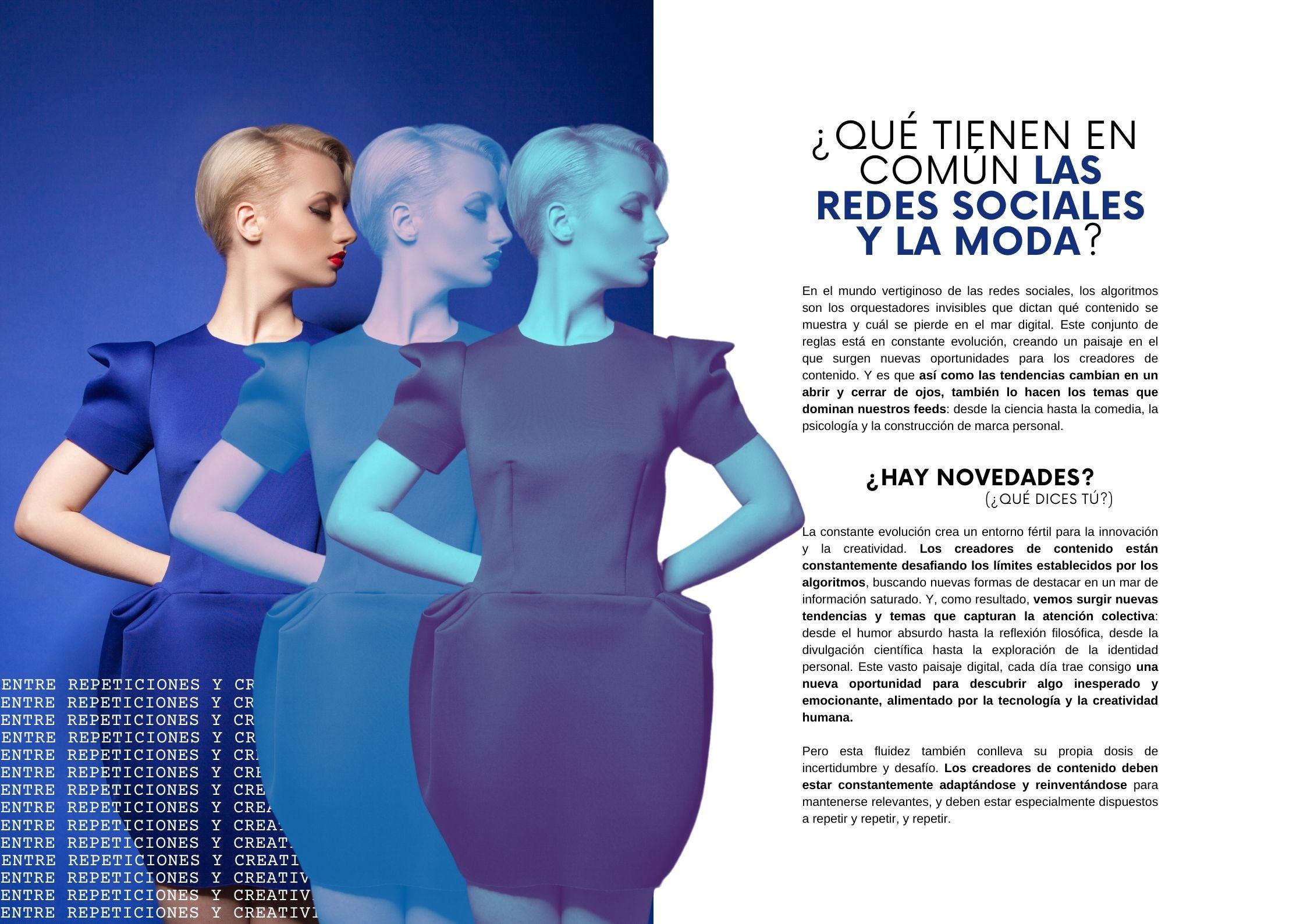 Bienvenidos a la edición 18 de RevisteLaCalle! En esta nueva revista digital, queremos abordar un fenómeno actual que impacta tanto en la industria de la moda como en la sociedad en general: cómo los algoritmos nos condicionan a repetir patrones en busca de más likes y mejor posicionamiento, sacrificando nuestra propia identidad.