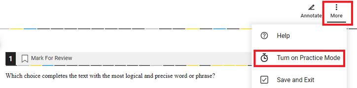 In late 2024, College Board announced that students with extended time accomodations would no longer be required to use the full time In alignment with this, if you would like to skip to the next section without running out your time, you may switch into practice mode. See the final page of this guide for detailed instructions on enabling practice mode