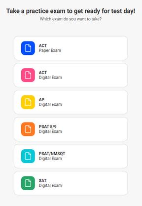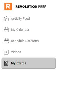 From the Exams tab on your Student Dashboard, click on the test type you would like to take a practice exam for today. If you are not sure which exam you are “supposed” to be taking, contact your Revolution Prep Academic Advisor for guidance