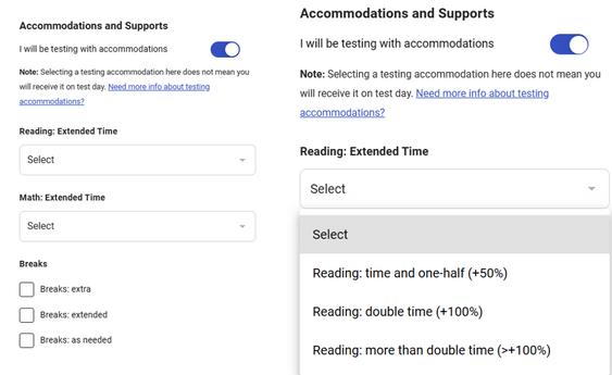 For more information about accommodations, you can click on “Need more info about testing accommodations?”