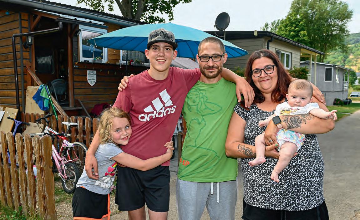 teilnehmen und ohne Gefahr mit dem Fahrrad durch die Gegend brausen. Hier können sie ungestört Tage und Wochen mit Camper-Freunden verbringen und sich so richtig austoben. „Es hat sich im Laufe der Zeit eine Art Gemeinschaft gebildet. Hier kennt jeder jeden, wie in einem kleinen Dorf. Ich finde das beruhigend.“ In ihrer Heimstadt Rodange sei das alles nicht mehr möglich. Es sei Mandy wichtig, dass ihre Kinder viel Zeit draußen an der frischen Luft verbringen. Kochen, putzen, waschen? Das sei für sie kein Problem, meint sie ganz entspannt, während sie die vier Monate junge Lexy sanft in den Schlaf wiegt.