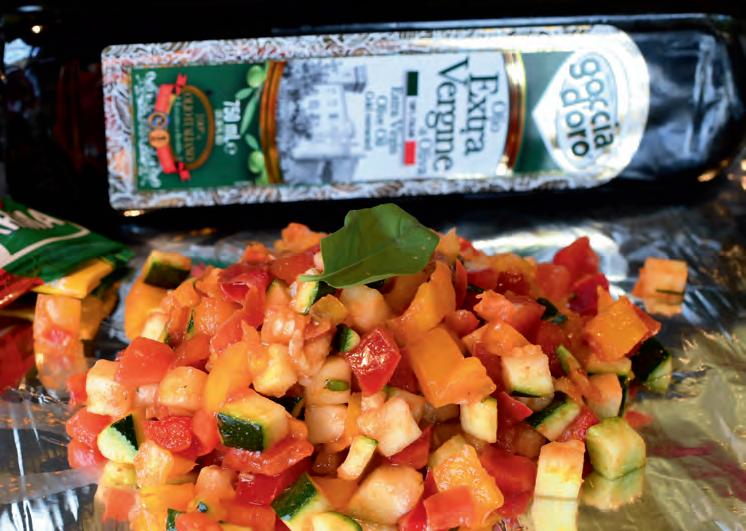 400 g Zwiebeln 400 g Paprika (rot und gelb gemischt) 300 g Kirschtomaten 2 Knoblauchzehen 2 EL Tomatenmark 2 EL Olivenöl 1 Prise Piment d’Espelette 1 Prise Salz ¼ Bund Oregano ¼ Bund Thymian