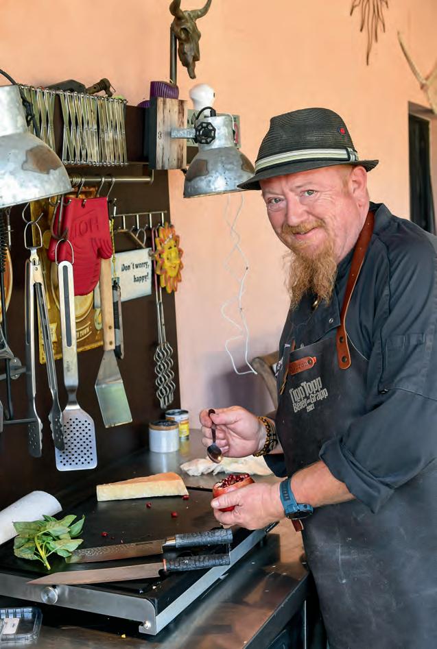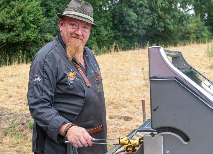 Von deftig bis fein, der zweifache Landesmeister im Grillen, Daniel Fischer, weiß, was sich mit herzhaften Speisen vom Rost kombinieren lässt. „Eine Beilage gehört beim Grillen einfach dazu“, behauptet der erfahrenen Grillmeister. Was diesen Punkt angeht, ist er kategorisch. „Ehrlich gesagt, ich bin mir nicht sicher, dass nur der Verzehr von einem geballten 500-Gramm-Steak zu empfehlen ist, schon alleine wegen dem Einfluss, den ein zu hoher Fleischkonsum auf deinen ökologischen Fußabdruck hat. Aber das ist noch ein anderes Thema. Einseitigkeit gibt es bei mir auf keinen Fall, denn nichts ist unmöglich beim Grillen. Es gibt keine Grenzen.“ Grillen war für den 51-Jährigen schon immer eine Herausforderung. Kein Wunder, dass bei ihm die Grillsaison vom 1. Januar bis zum 31. Dezember geht. In seiner komplett ausgestatteten Außenküche sorgt Daniel immer wieder für neue kulinarische Überraschungen, um sich und seinen Gästen eine Freude zu bereiten. Mangel an Inspiration gibt es bei ihm nicht. „Es gibt auch kein No-Go. Alles ist erlaubt. Um den klassischen Beilagen zu entkommen, brauchen Sie nur ein wenig Zeit und eine Prise Originalität. Mehr nicht.“ Für ein gelungenes Grillfest, so meint der Meister, reichen Lebensmittel, die bereits im Haushalt vorhanden oder in jedem Supermarkt erhältlich sind. „Du brauchst keine unbekannten Gemüsesorten, unaussprechliche exotische Zutaten und teure Gewürze, die irgendwo am anderen Ende der Welt bei Vollmond geerntet wurden“, meint er lachend.