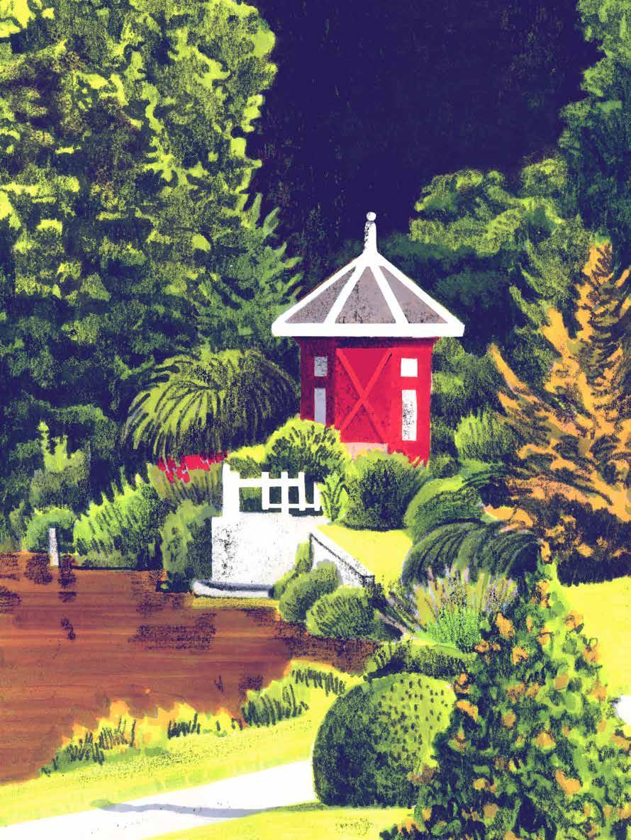 6. Empruntée à la peinture, la perspective aérienne ou atmosphérique désigne une perspective artificielle obtenue grâce à la graduation des teintes. Les végétaux les plus foncés sont au premier plan et les teintes s’éclaircissent jusqu’aux lointains.