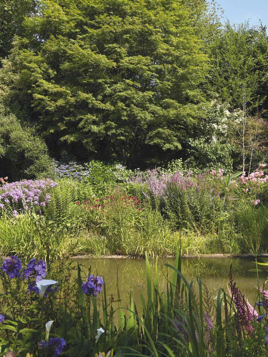 L’étang et les iris japonais du jardin anglais de La Pellerine (Mayenne). © Photo Philippe Piron.