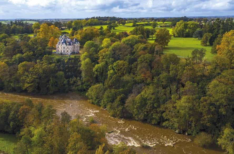 Le parc agricole de Montgiroux, à SaintGermain-d’Anxure, surplombant la Mayenne et ouvert sur la campagne environnante. Le château a été construit vers 1865 par l’architecte Pierre-Félix Delarue pour Frédéric de Robien. © Photo Région