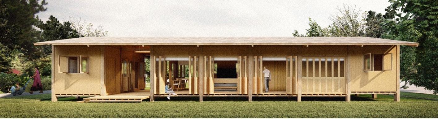 Our project utilizes the use of space to the maximum by using the rectangular layout which creates a suitable living and working space. The proj-ect represents the beauty of wooden architecture and the capabilities of wooden structures which can reduce the waste caused by the construction process. The space inside shows how well-proportioned the wood is and the ability to rapidly transfer heat. The furniture are made with the same wood and are designed to fit the need in each space of the house. Folding doors are used to connect each space together and thus improve heat transfer efficiency. Each of the modules is calculated to use the most