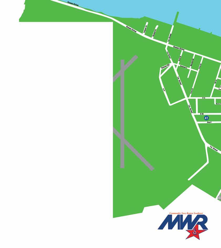 fitness centers, bowling alley, Navy Exchange and Commissary, ball fields and playgrounds.