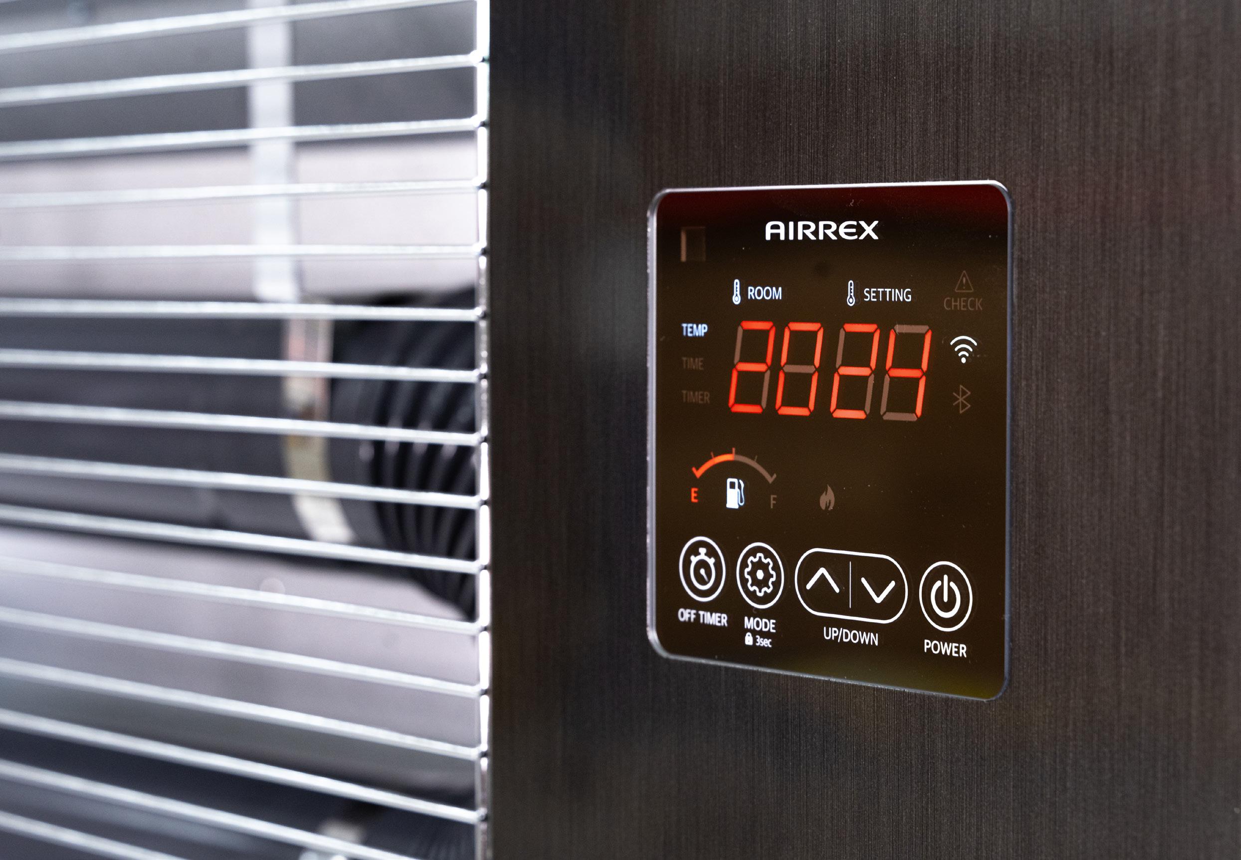 AIRREX šildytuvas yra tikrai saugus, nes jame įrengta dvylika skirtingų saugos funkcijų, įskaitant degimo stebėjimą, pasvyrimo jutiklius ir apsaugą nuo perkaitimo.
