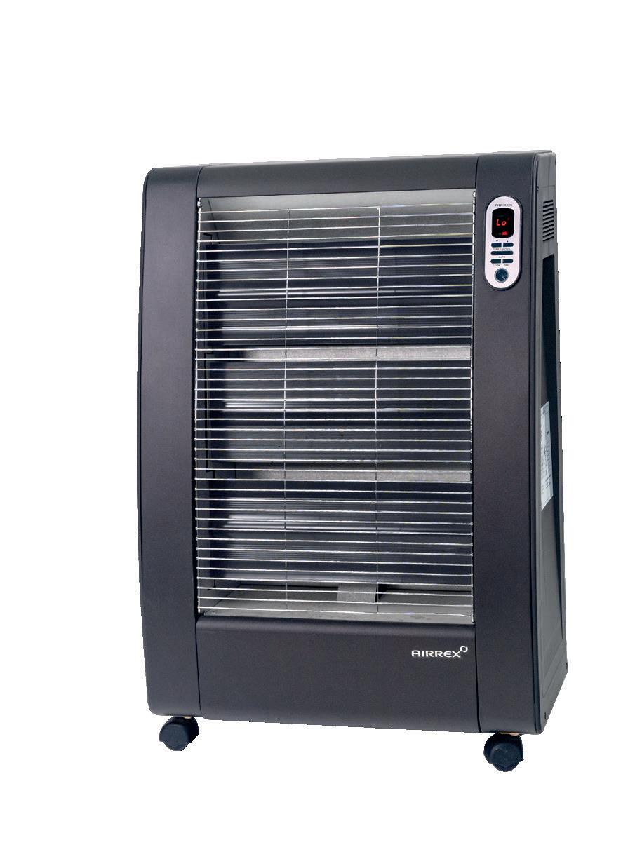 Infračervené teplo vytvárané jedinečnými keramicky potiahnutými výmenníkmi tepla a halogénovou lampou sa rozprestiera rovnomerne všetkými smermi a poskytuje príjemné teplo aj v blízkosti ohrievača. Vstavaný ventilátor môže ďalej zvýšiť vykurovaciu kapacitu. Funkcie zahŕňajú automatickú