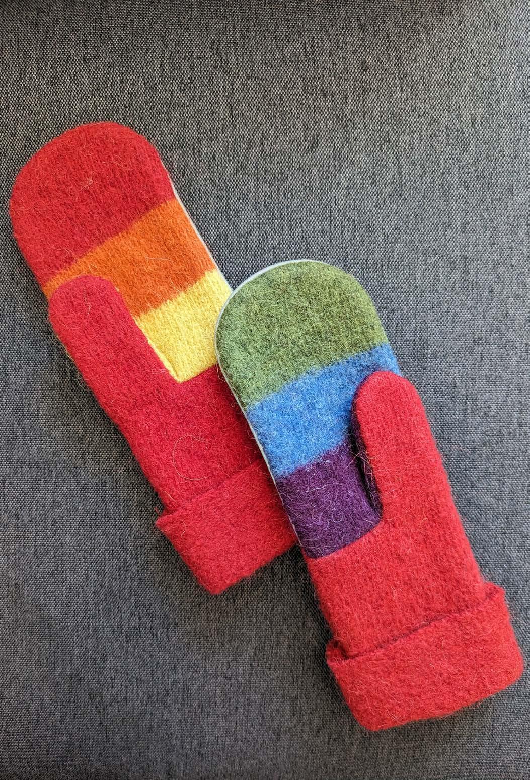 Vettlingar frá Tíru Saman mynda vettlingarnir regnbogafána en á þeim er jafnframt endurskinsrönd til að auka sýnileika, bæði í umferð og samfélagi.