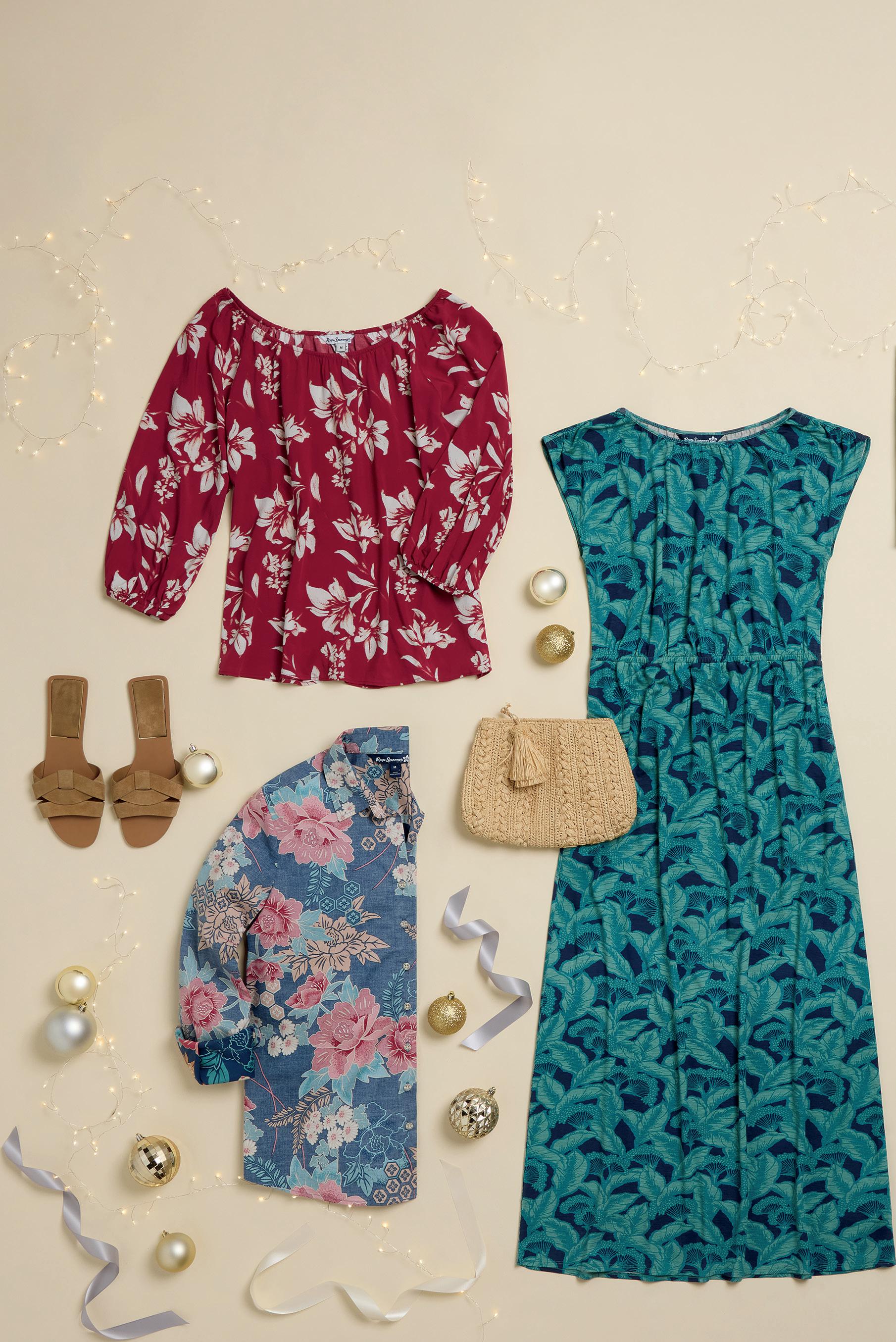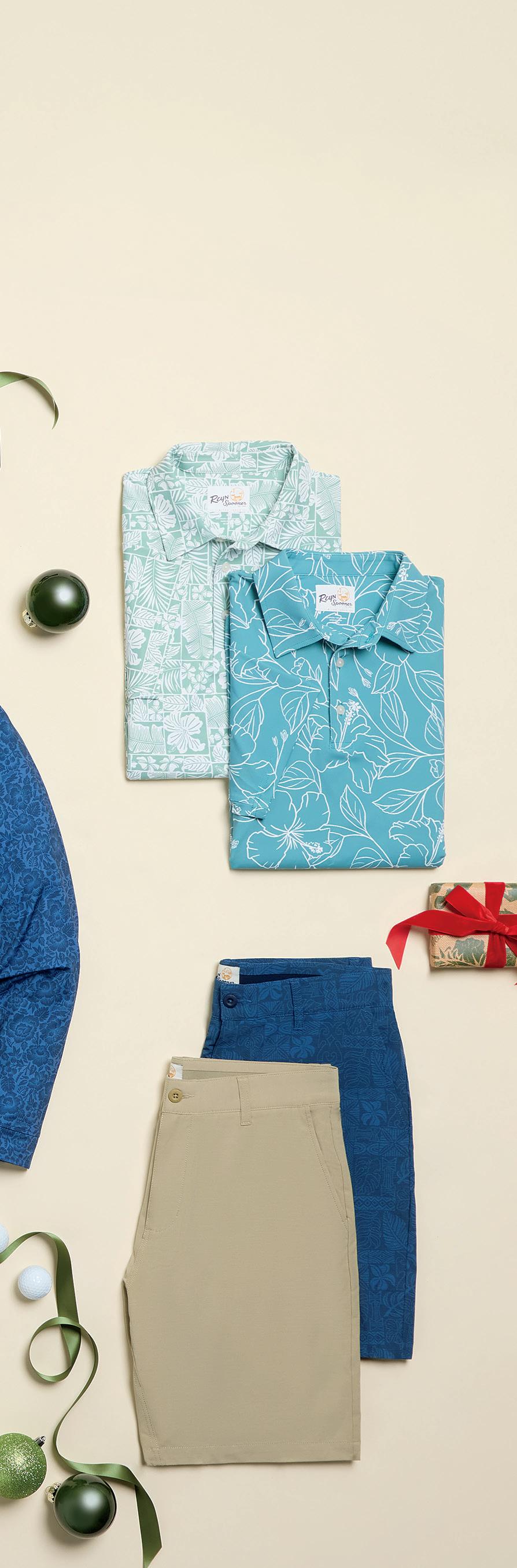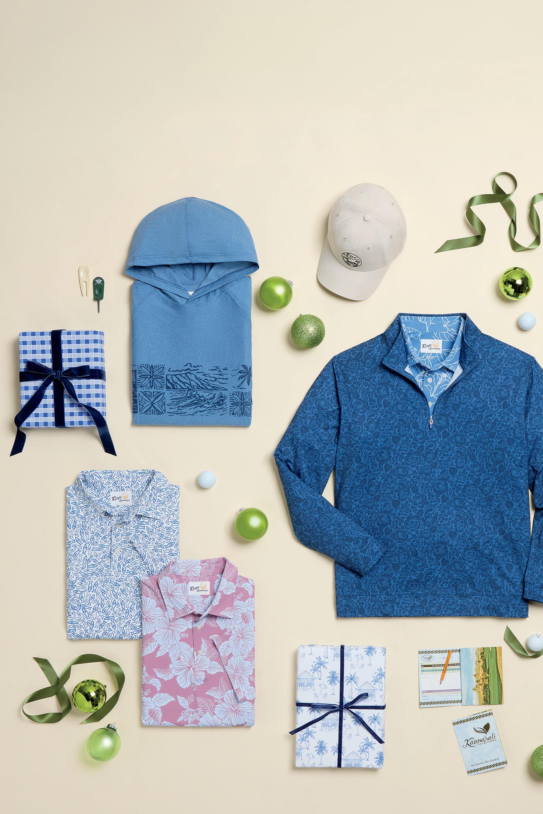 1. Lahaina Sailor Boxer Brief, Country Daisy Boxer $38 2. Performance Aloha Shirts, Omeo in Olive, Tropical Shade in Straw, $128 3. Lahaina Sailor Socks in Navy, $20 4. Santa Hula Long Sleeve Graphic Tee in Navy, $54 5. Heathered Jersey Performance Quarter Zip in Mid Blue, $138, Tahitian Tapa Men’s Spooner Kloth™ Aloha Shirt in Olive, $128 6. Lahaina Sailor Long Sleeve Spooner Kloth™ Aloha Shirt in Navy, $138, 7. Men’s Spooner Kloth™ Aloha Shirts, Makapu‘u in Maroon, School Day in Dark Lavender, $128 8. Floral Frames Performance Quarter Zip in Charcoal, $128 9. Cruiser Shorts in Stone, $69.50, Aloha ‘Aina Shorts in Nantucket Red, $99.50 10. Aloha Biscus Performance Polo in Cameo Blue, $108