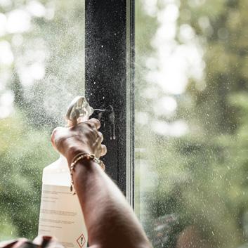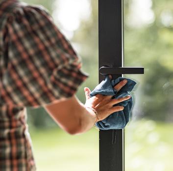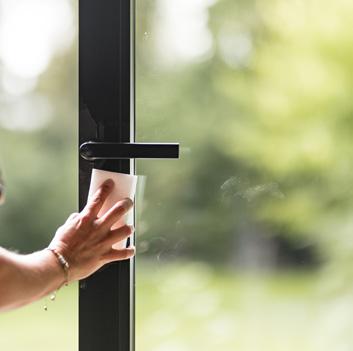 • Vermijd agressieve of bijtende schoonmaakmiddelen, omdat deze onherstelbare schade kunnen veroorzaken aan de oppervlaktebehandeling van uw raam- en deurelementen. Gebruik in plaats daarvan ons speciale assortiment Reynaers Care-producten. U vindt een overzicht van onze verzorgingsproducten op pagina 10 of in de speciale onderhoudsbrochure.