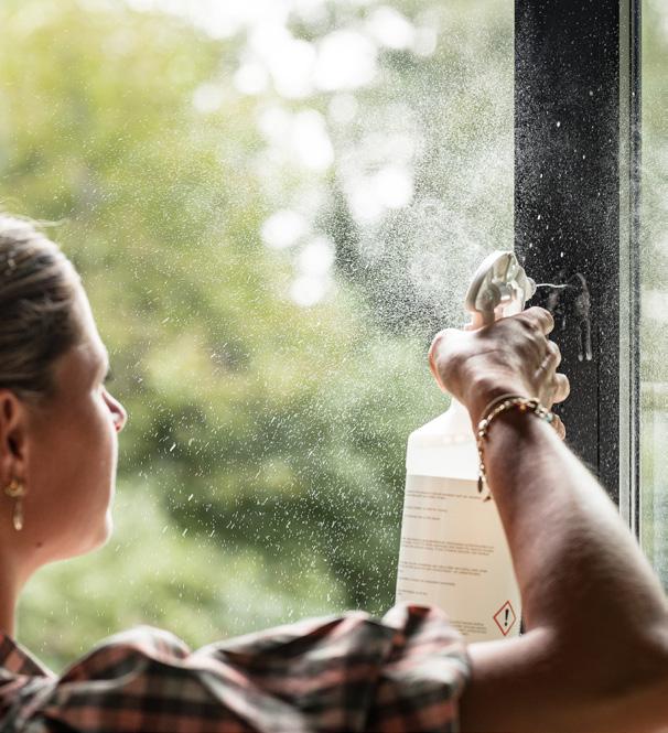 - Ga je ramen en deuren niet te lijf met stoom- of hogedrukreinigers.