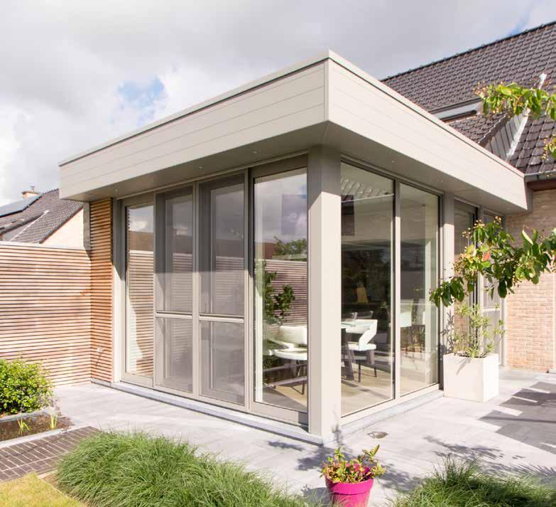 Droom je van een eigen veranda? Het hele jaar door ontspannen genieten van extra licht en ruimte in je huis…. Met een veranda vervagen de grenzen tussen binnen en buiten. Zo heb je meer plezier van je huis én van je tuin. Met aluminium is bijna alles mogelijk, van de meest eenvoudige aanbouwveranda tot complexe constructies. Bovendien hebben aluminium profielen een lange levensduur, worden ze niet aangetast door UV-stralen of vocht, roesten of verweren ze niet en trekken ze niet krom. Aluminium dient nooit gevernist of geschilderd te worden. Het volstaat om aluminium profielen een aantal keer per jaar te reinigen met lauw water en een niet-agressief poetsmiddel. Met een aluminium veranda van Reynaers breid je zorgeloos en levenslang je comfort uit.