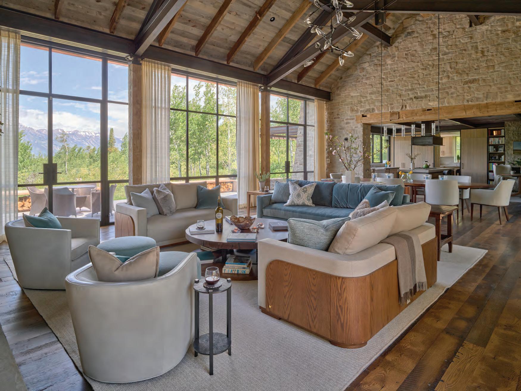 LEFT: A soft palette of color choices by WRJ Design allows the architecture and the natural surroundings outside to take center stage in the great room.