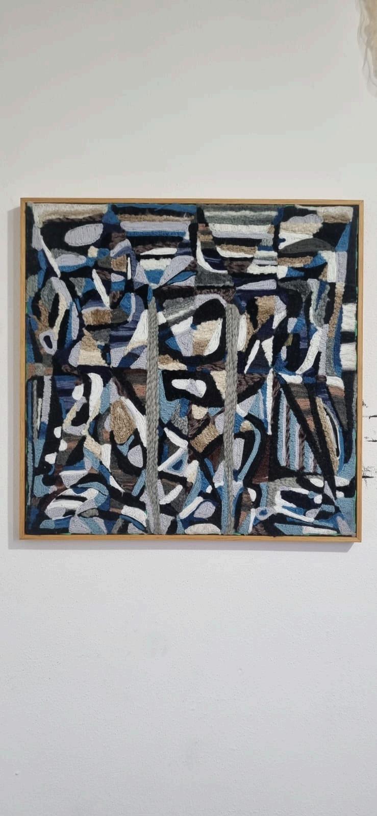 Palabras de verdad , 2025, collage textil (estambre de algodón sobre foam), 60 x 60 cm.