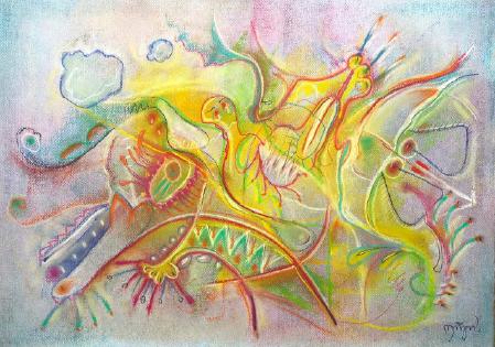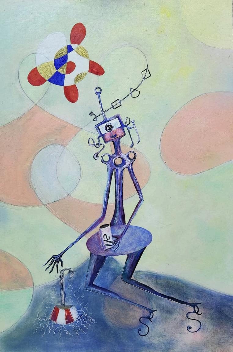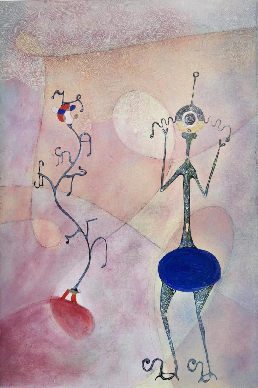Juego Celeste, 2025, acrílico sobre tela, 40 x 50 cm.
