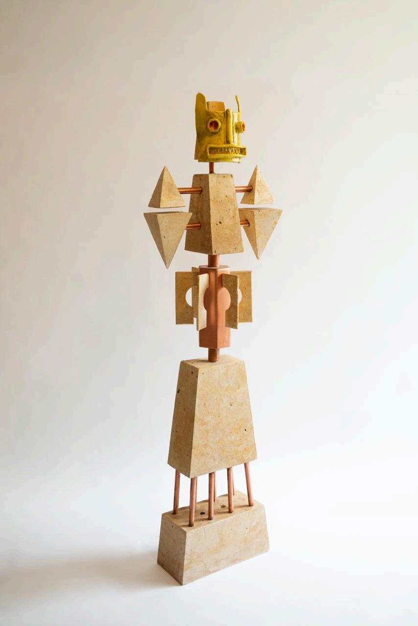 Tecuán, 2025, concreto marmoleado, cobre y cerámica, 30 x 50 x 170 cm, 70 kgs.