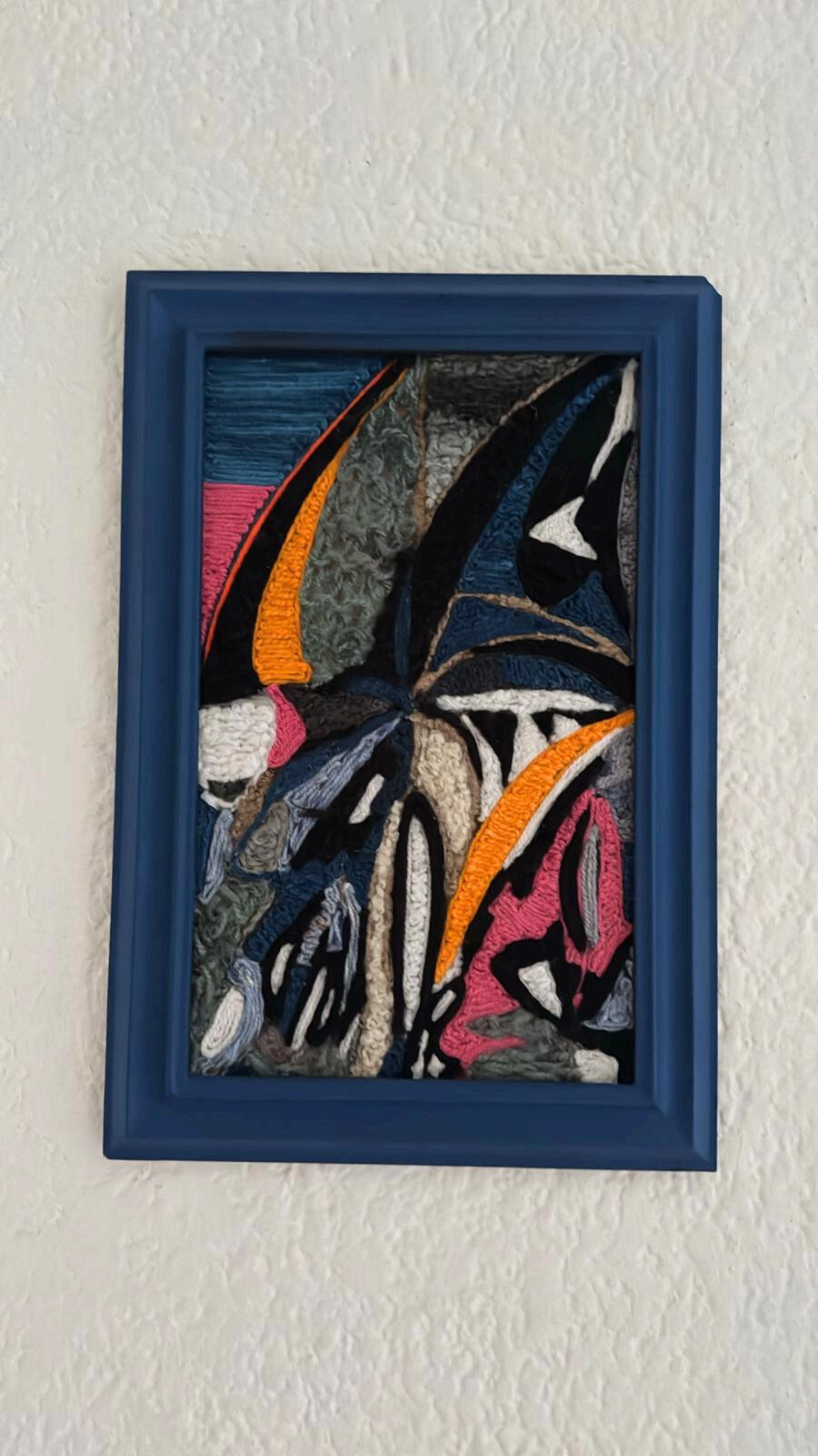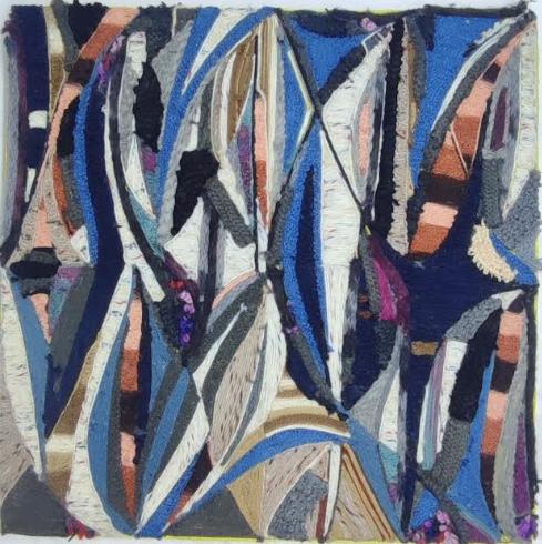 Dodger Blue, 2025, collage textil (estambre de algodón), 35 x 20 cm.
