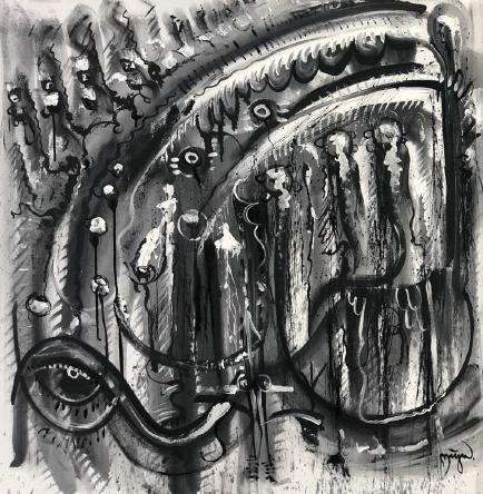 África, 2025, tinta china y acrílico sobre lienzo, 111 x 111 cm.