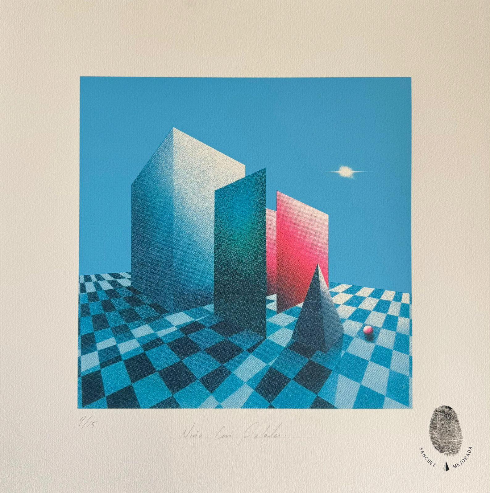 Niño con pelota, 2022, serigrafia sobre papel algodón, 30 x 30 cm.