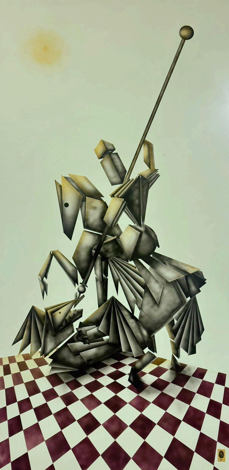 San Jorge y el Dragón, 2024, tinta china sobre tela, 200 x 100 cm.