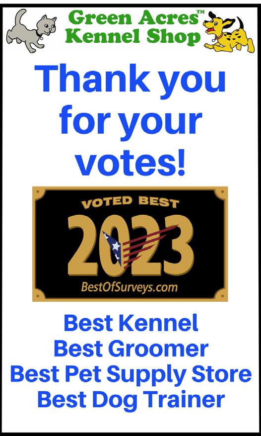 [Bangor, Maine July 15, 2023] Green Acres Kennel Shop of Bangor, Maine, was voted the region's Best Kennel, Pet Store, Dog Trainer, and Pet Groomer in a survey conducted by Market Surveys of America and the GKM Independent Survey Company. This marks Green Acres's 22nd year as a "Best of Business."