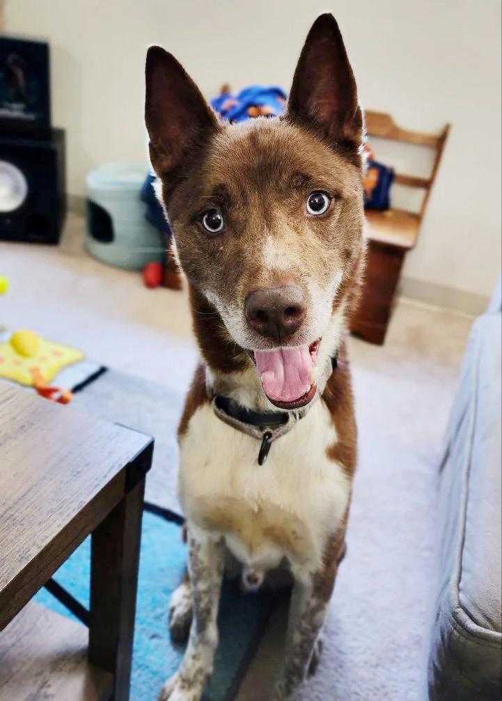 Intelligent, loves to play, enjoys a walk/hike and a good couch snuggle. Working on his leash skills. House trained, sleeps soundly in the crate all night and knows some basic commands. Warms up to new people quickly. He’d love a dog pal and would be great with slightly older kids.