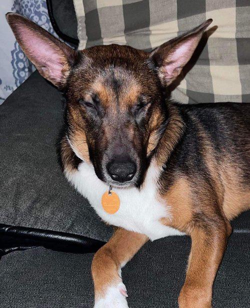 Strong young pup! Loves to go for walks and hikes, the longer the walk, the happier he is! Would do well in a home that is very active. He has these AMAZING ears! He loves to snuggle, is fantastic at catching treats in the air, and would love a yard that he could show off his zoomies