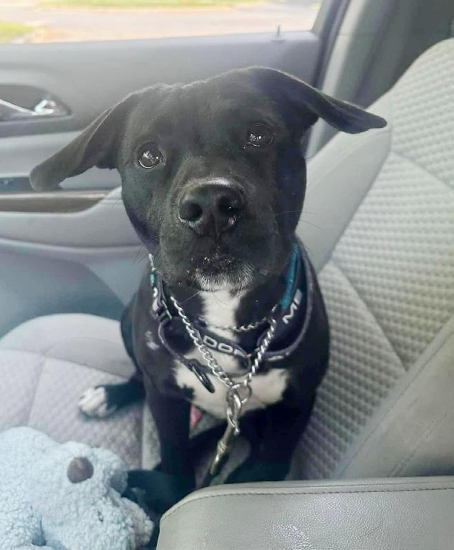 He is so sweet and loves ALL humans! He will collapse onto his back expecting tummy rubs. He’s a good boy and loves to play ball. He has lots of puppy energy and absolutely loves being with his person. NO cats. He loves dogs but needs slow proper intro due to what we assume, was a bait dog past.