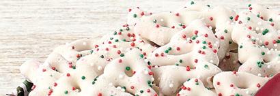 • Pretzels covered in creamy white confectioner’s coating
