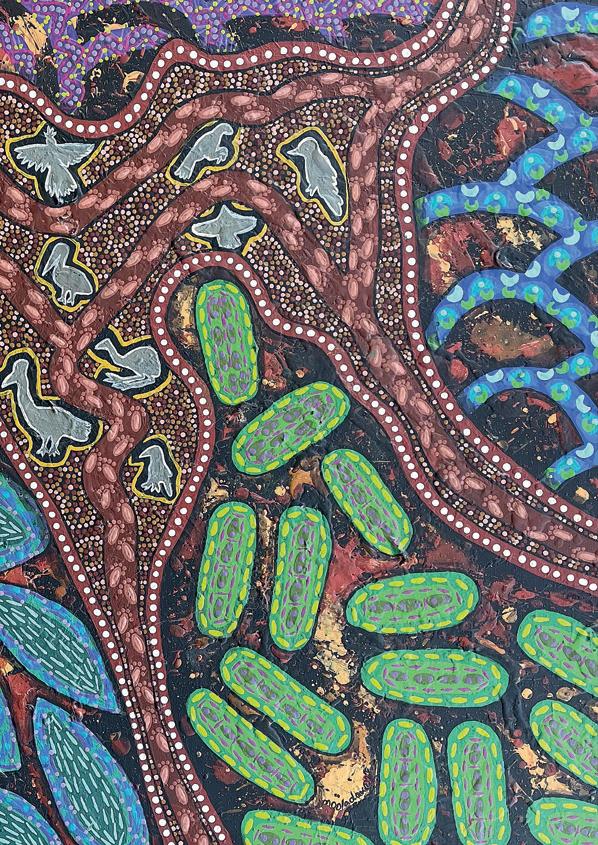 On the cover and throughout the pages of the Annual Report 2021/22 are elements of Wudarabin Snider’s artwork titled, Lores